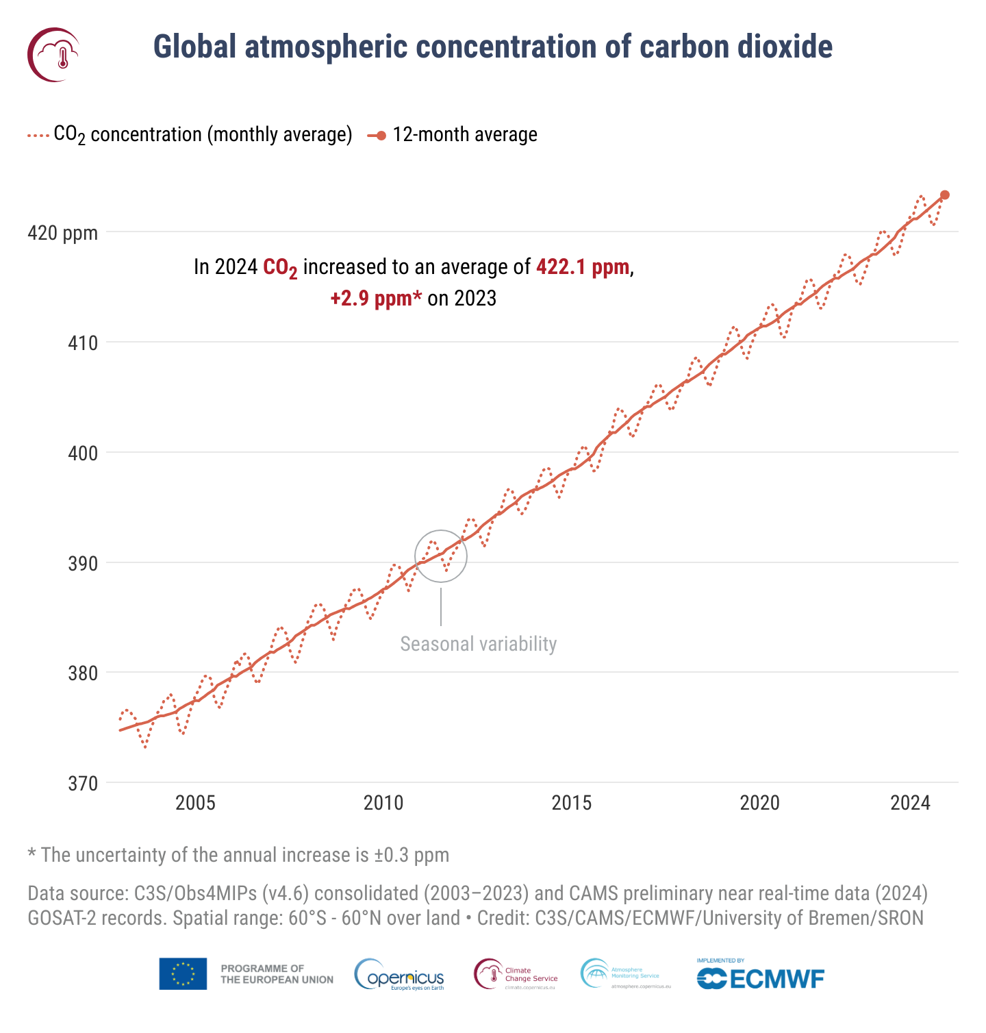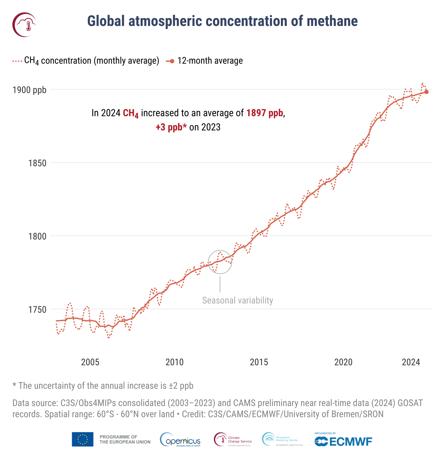 Die atmosphärischen Konzentrationen von Kohlenstoffdioxid und Methan erreichten 2024 neue Rekordwerte: